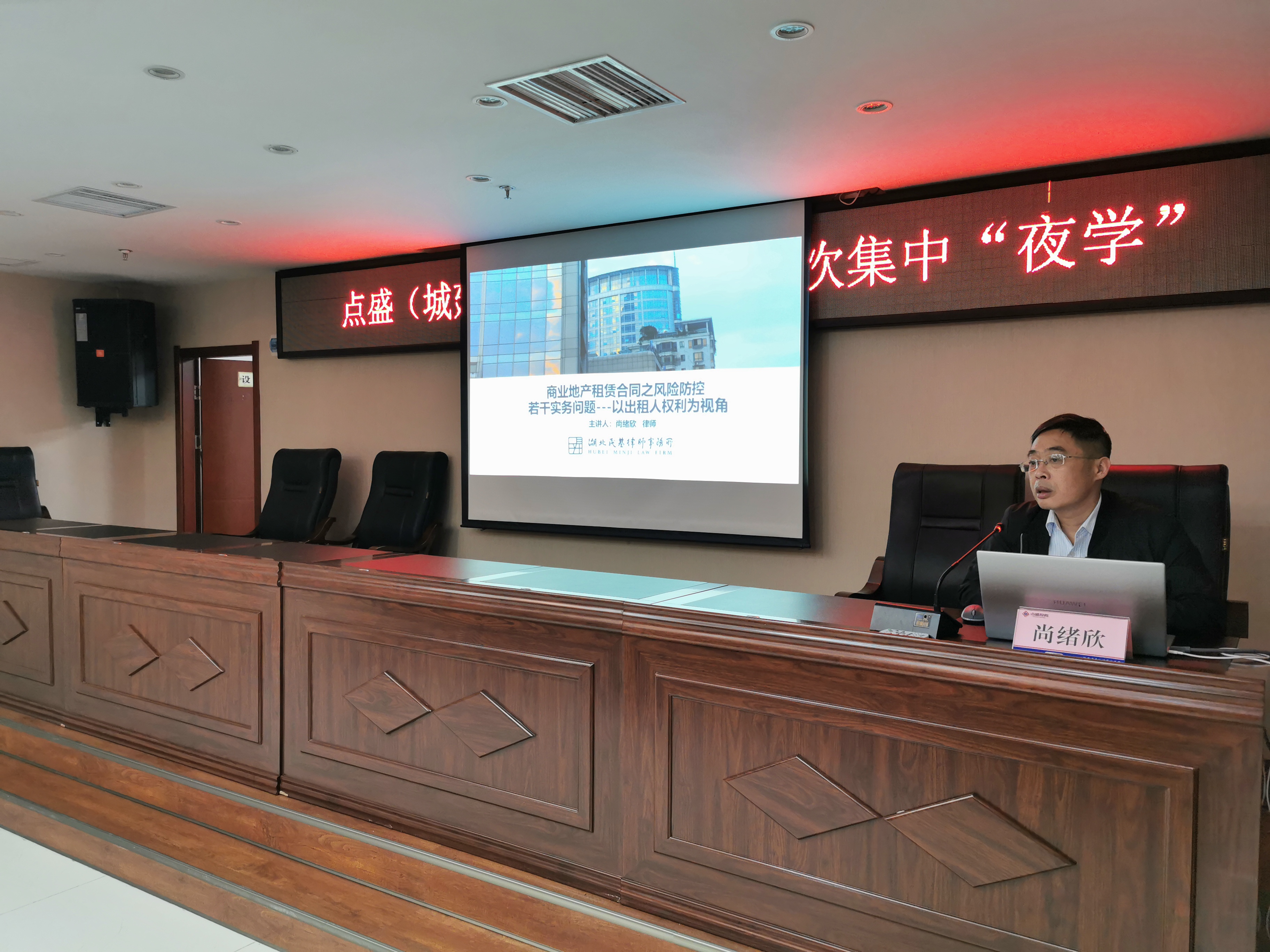 尚緒欣律師以《商業(yè)地產(chǎn)租賃合同之風(fēng)險(xiǎn)防控若干事務(wù)問(wèn)題——以出租人權(quán)力為視角》為題,通過(guò)詳細(xì)講解風(fēng)險(xiǎn)防控管理的31個(gè)風(fēng)險(xiǎn)點(diǎn),進(jìn)一步提高了員工法律知識(shí)儲(chǔ)備和學(xué)法用法的能力。
