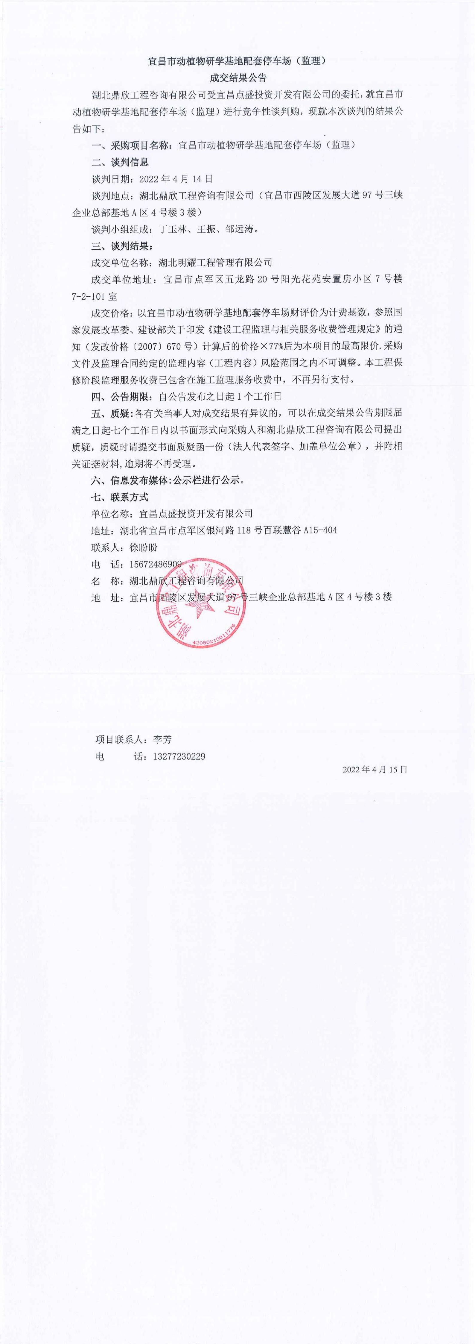 宜昌市動(dòng)植物研學(xué)基地配套停車場監(jiān)理成交公告
