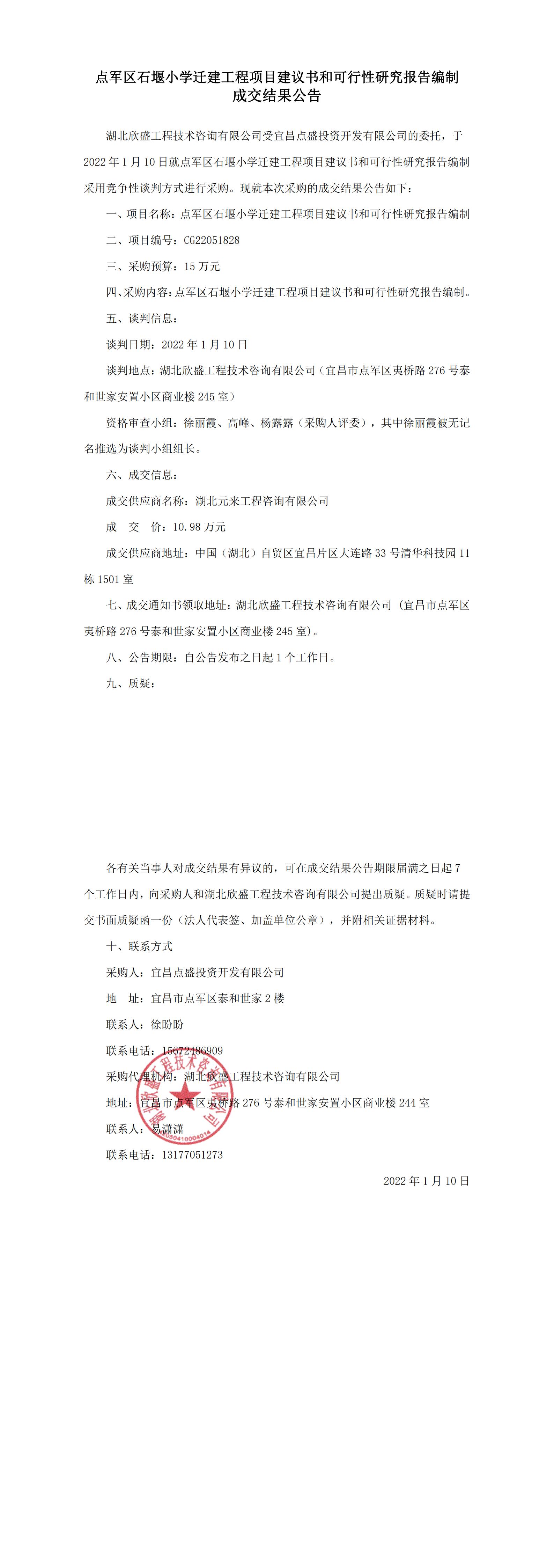 點(diǎn)軍區(qū)石堰小學(xué)遷建工程項(xiàng)目建議書(shū)和可行性研究報(bào)告編制成交結(jié)果公告