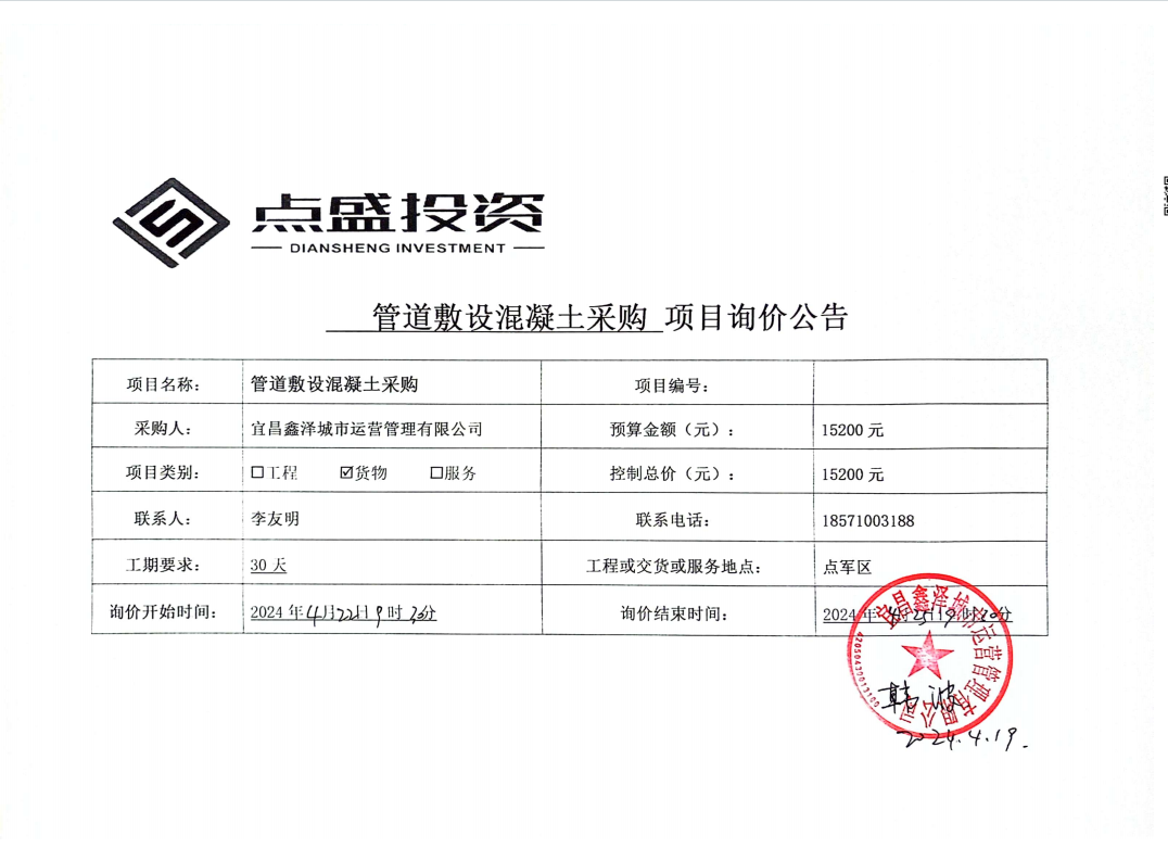 管道敷設(shè)混凝土采購(gòu)項(xiàng)目詢價(jià)公告
