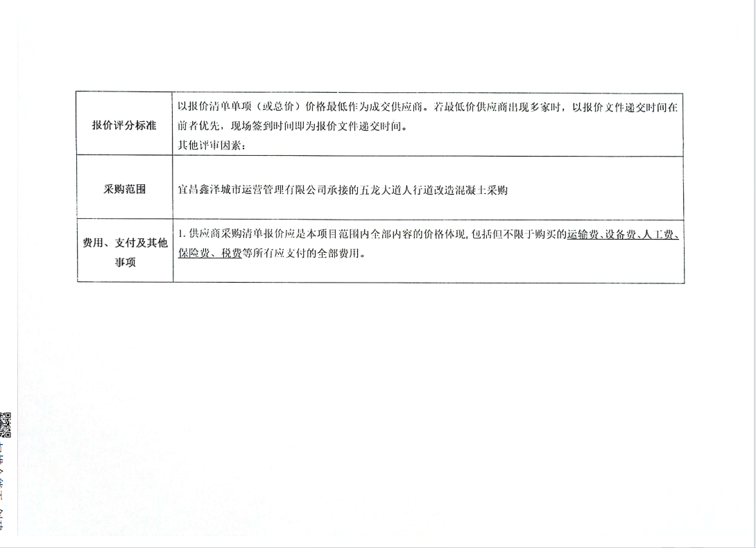 五龍大道人行道改造混凝土采購項(xiàng)目詢價(jià)公告