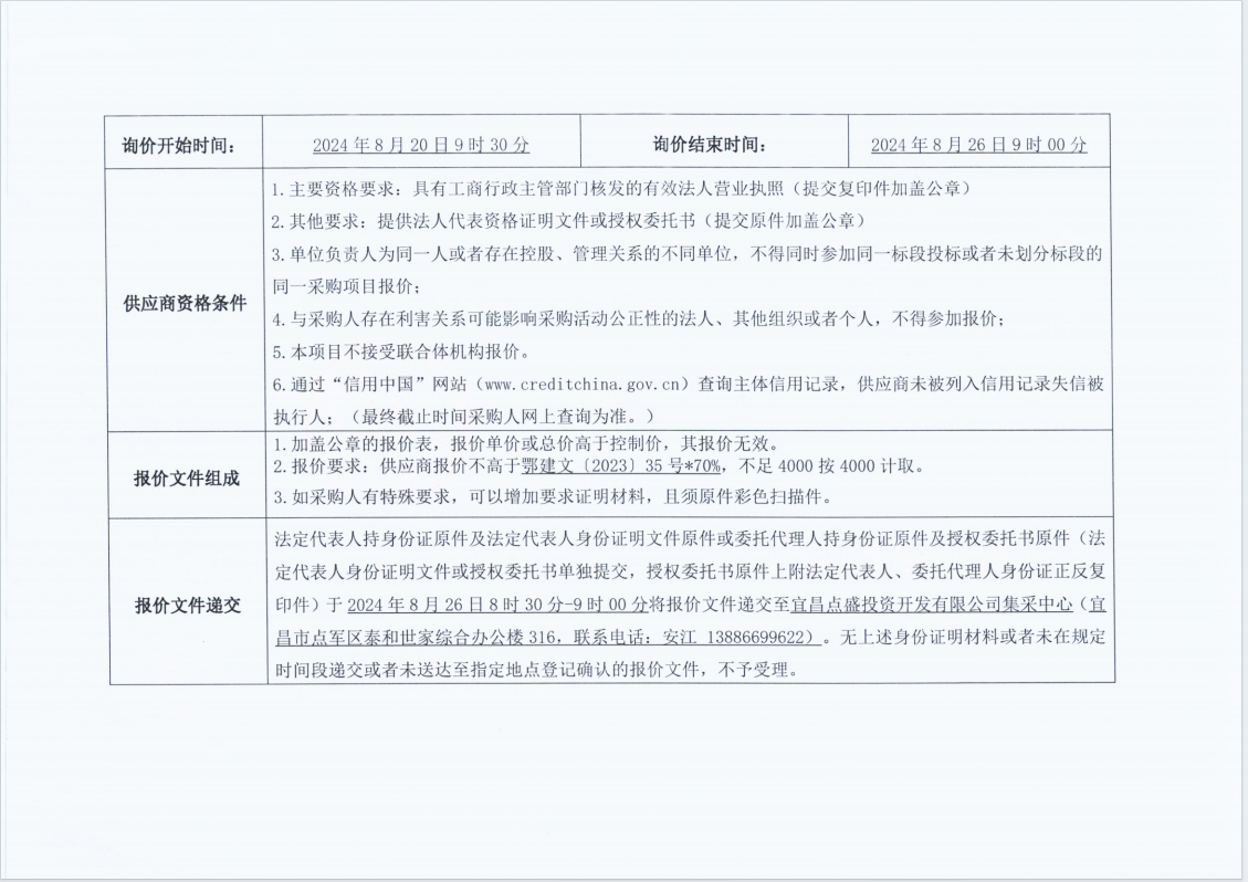 詢價(jià)公告