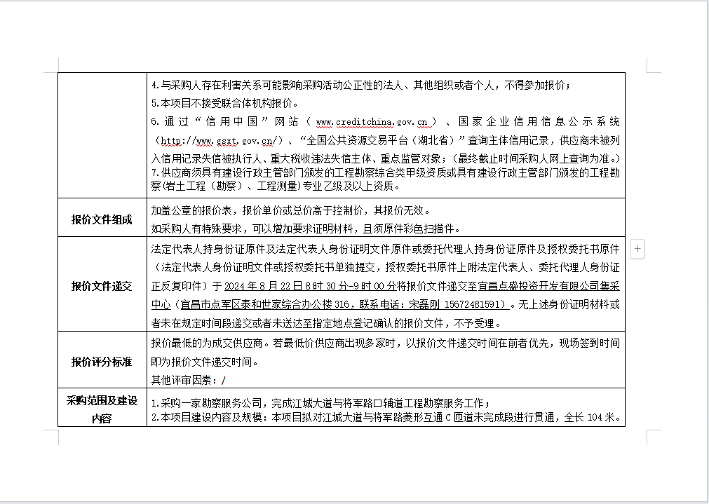 江城大道與將軍路口輔道工程勘察服務(wù)詢價公告