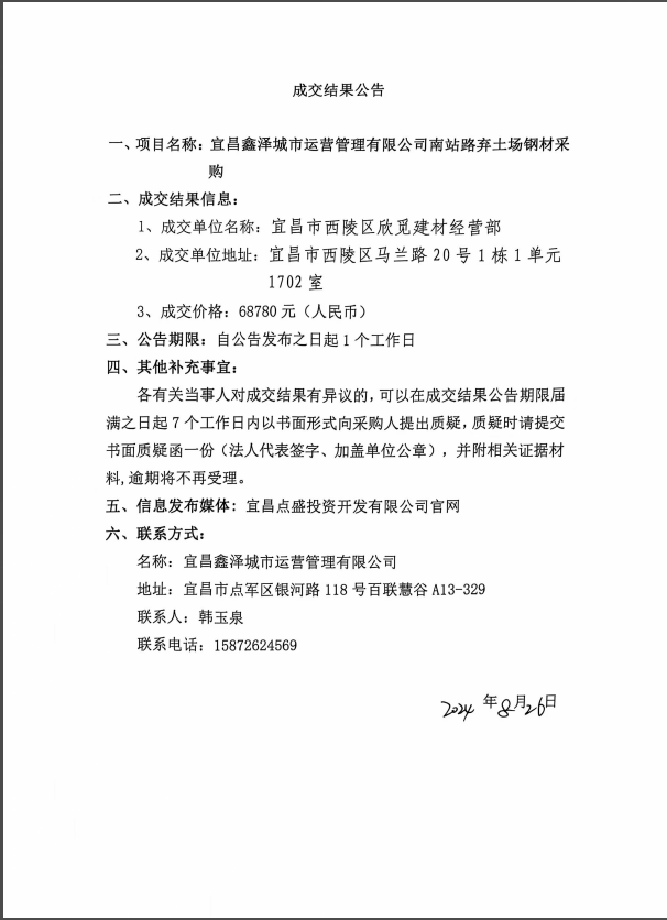 南站路棄土場(chǎng)鋼材采購(gòu)項(xiàng)目成交公告