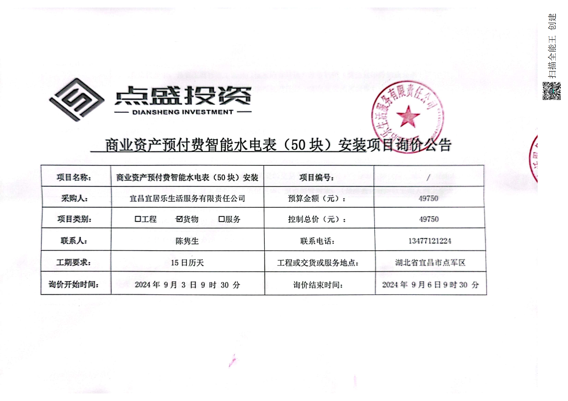 商業(yè)資產(chǎn)預(yù)付費(fèi)智能水電表(50塊)安裝