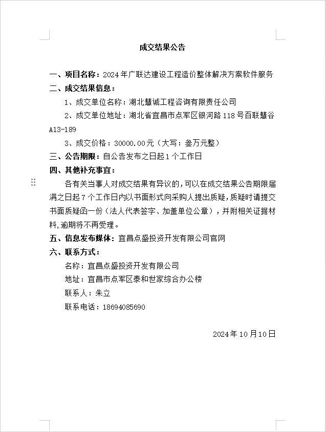 2024年廣聯(lián)達(dá)建設(shè)工程造價整體解決方案軟件服務(wù)成交公告